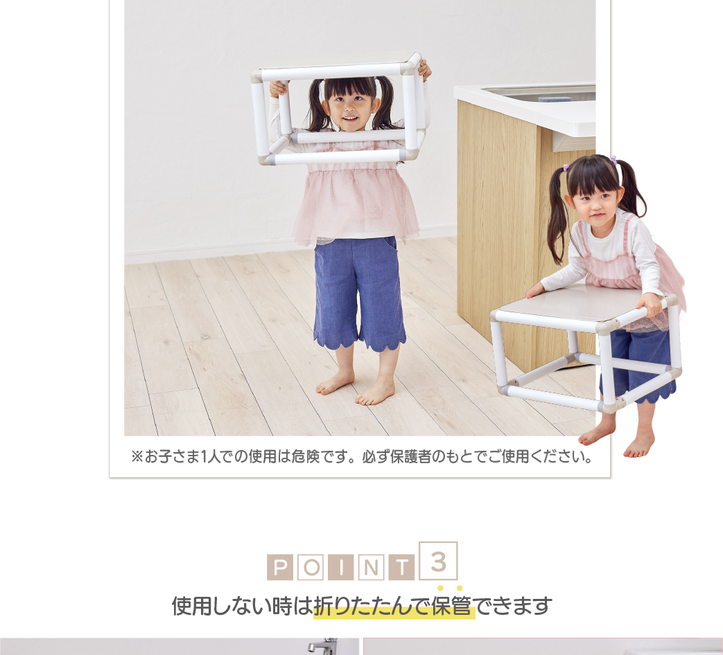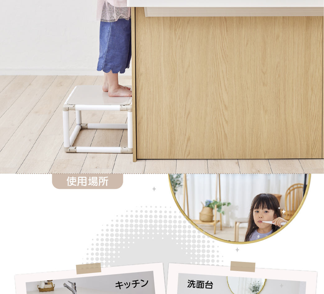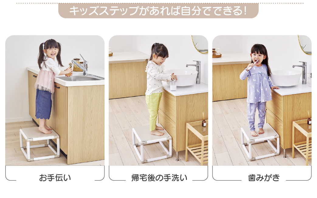 子供用の踏み台は、子供が洗面台で自ら手洗いや歯磨き、またキッチンでママのお手伝いをするなど自立心と自信を育てるのに効果的です。