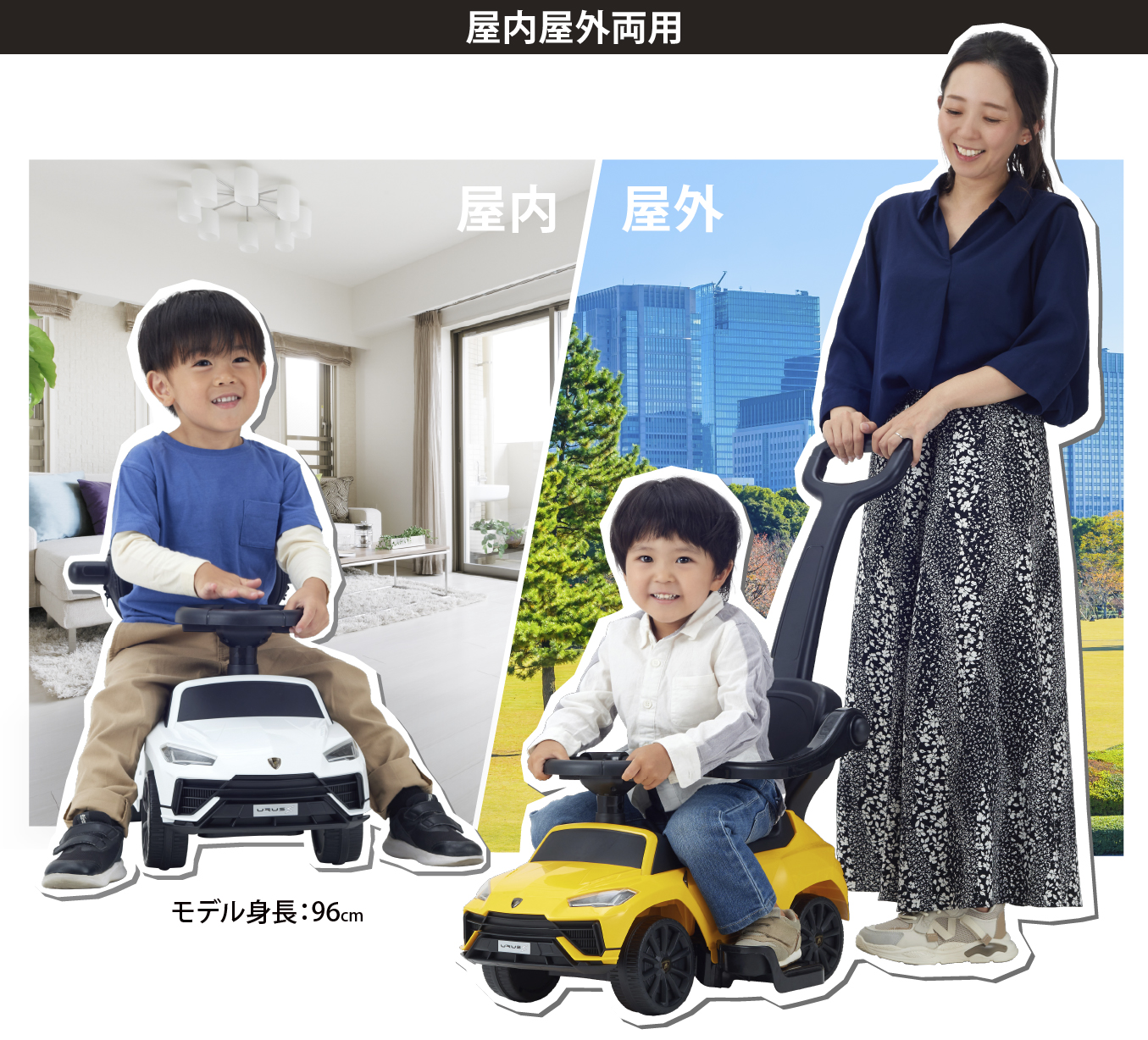 おうちの中はもちろん、お外でも思いっきり楽しめる「屋内屋外両用」です。